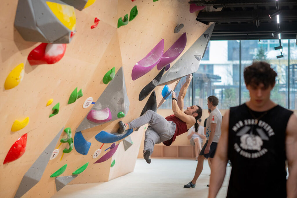 Отдельный разговор — фестивальные трассы, они получились действительно хорошими. Я как бывший накрутчик могу оценить их по достоинству. Особенно запомнилась зона под антресолью: трассы идут скорее вбок — прям «изюминка» зала. Думаю, со временем, когда добавят больше зацепов, зал станет более удобным, местные и приходящие тренеры смогут придумывать больше своих трасс и активно использовать зал. Да и обычные посетители, думаю, оценят это.